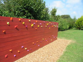 Active play is very important for young children. Our climbing / traversing walls help children build confidence and dexterity as they master the increasingly difficult traverse. The hand and foot holds are made of colourful high density plastic and are used in rock climbing walls. The maximum fall height is 600mm so a soft landing area is not required, but is offered as an optional extra. Sizes are based on 2 meter square panels, and multiple bays can be erected contiguously to make an extended traverse getting progressively more difficult. Prices start from as little as £800 including installation*. We can also create a traversing wall on the walls of the school building. Give us a call on 01903 261191 or drop us an e-mail to discuss your needs. * Determined by geographical location. |