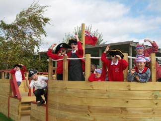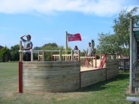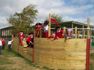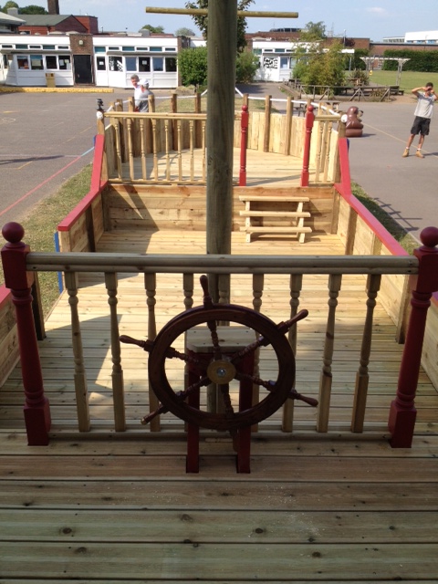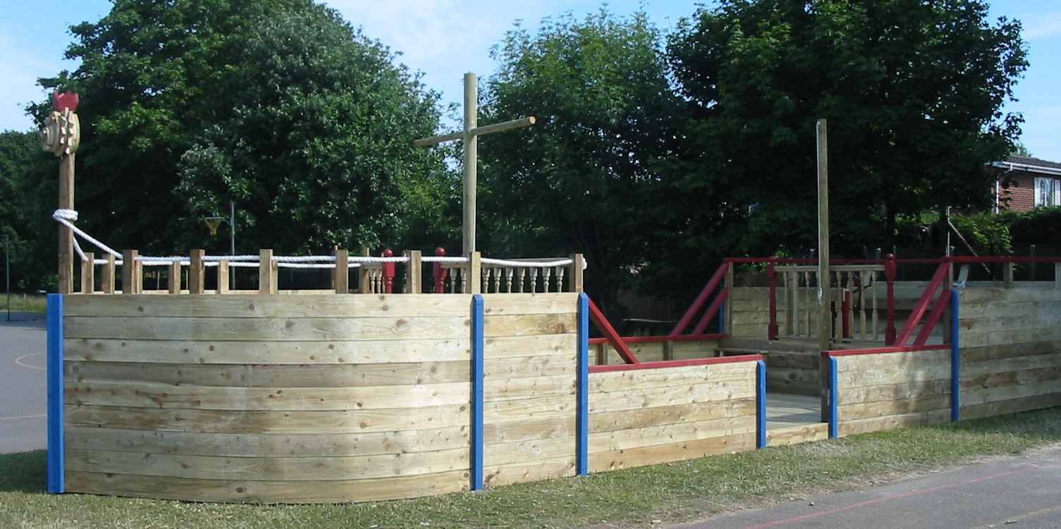 This is a large installation! It measures some 3 metres in width and is just under 9 metres in length. It is large enough to accommodate a complete class spread over three decks, fore deck, lower deck and poop deck. Use it to bring to life stories of Treasure Island and Long John Silver, as a set for The Pirates of Penzance, as a prop for history and geography teaching. Or you could just use it as a brilliant active play installation. Prices start from as little as £6,000 including installation. We can even custom build your school logo as the ships figure head! Please contact Liz on 01903 261191 or drop us an e-mail to discuss your needs. |