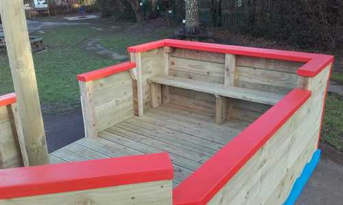 This is a smaller installation than our standard Pirate Ship but is still 100% fun! It measures some 3 metres in length and is just under 1.8 metres in width. It is ideal for early years and nursery playgrounds. Inside are two decks, fore and aft (front and back). At the stern of the boat is a bench seat from where the captain can issue orders. The trim is painted in a single colour of your choice. Prices start from as little as £2,700 including installation. We can even custom build your school logo as the ships figure head! Please contact Liz on 01903 261191 or drop us an e-mail to discuss your needs. |