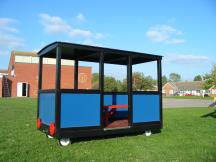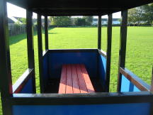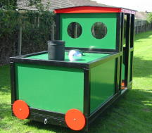 This wonderful Play Train with its Carriages provides an novel solution to your shade requirements. Each carriage seats up to ten children. The train has valves and levers to enhance the play experience for the children. The trains and carriages are mounted on 6" static wooden wheels and have removable rubber wheels so the train can be positioned around the playground and school fields. A station is also available, providing more covered seating areas. The station can also double as a stage. Please contact Liz on 01903 261191 or drop us an e-mail to discuss your needs. |