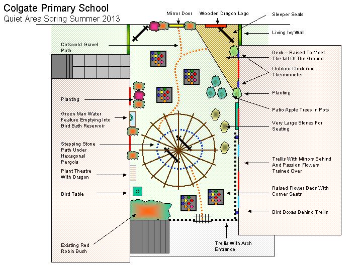 The project was to turn the this plan for a quiet area in the school into reality using a very unpromising piece of sloping ground!